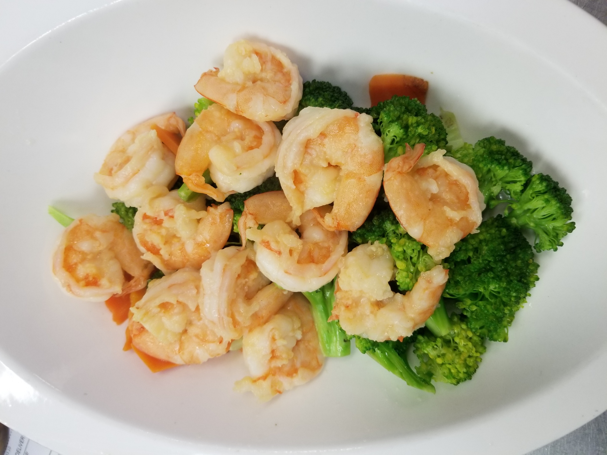 tender shrimp and carrots, crisp broccoli florets, tossed in a savory house made sauce.